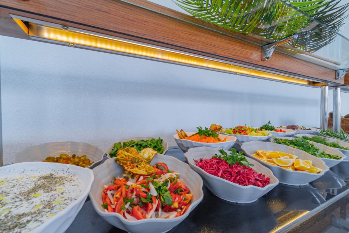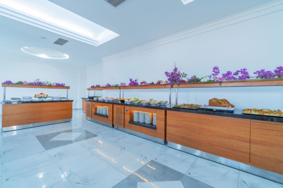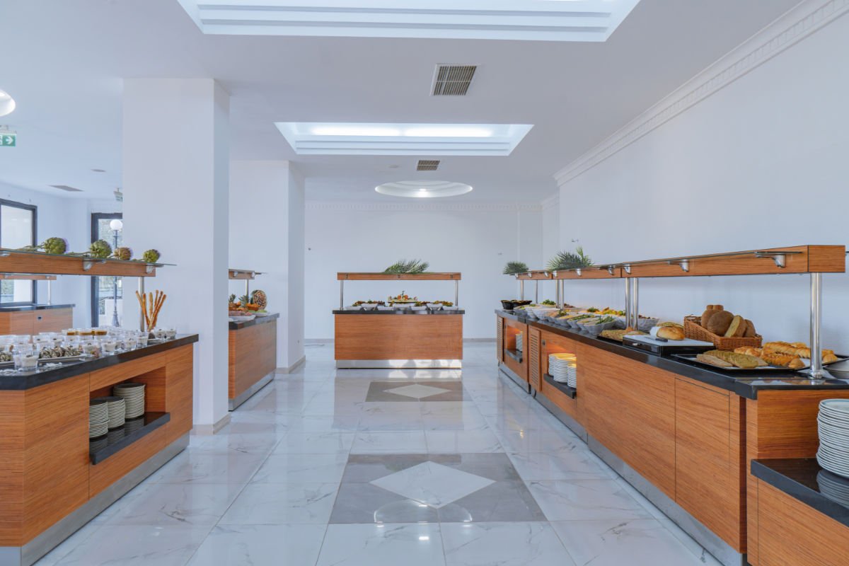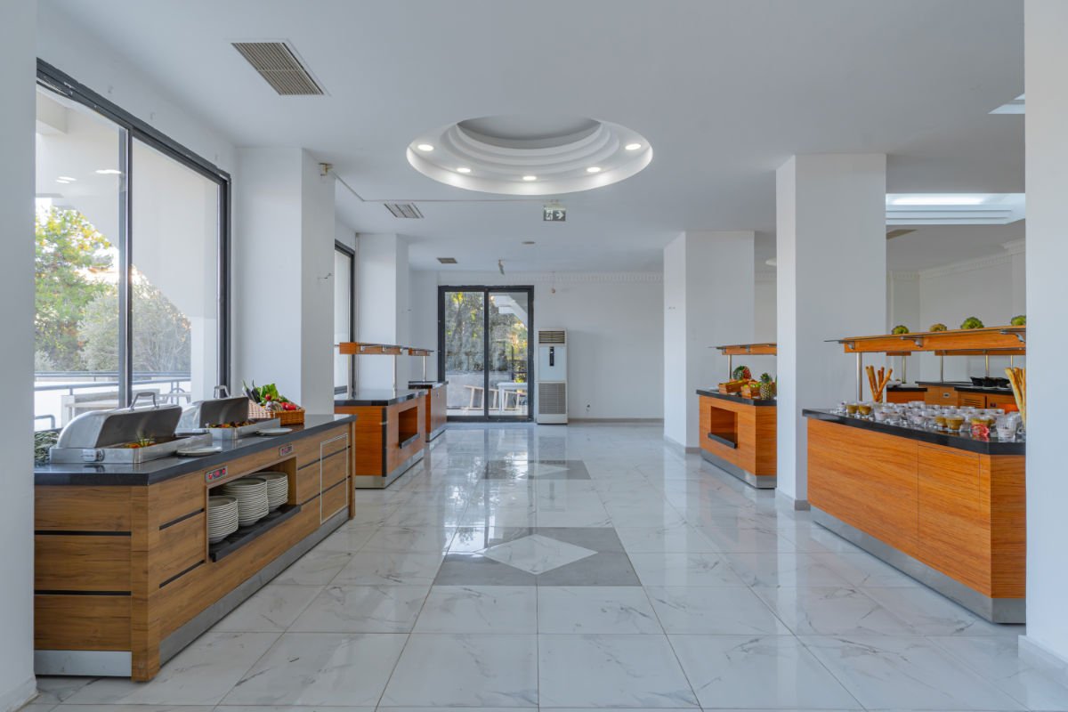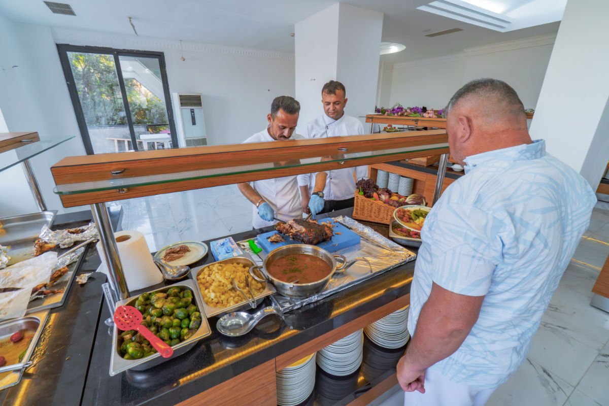 Restoranlar 08:00 – 10:00 Sabah Kahvaltısı 12:30 – 14:00 Öğle Yemeği 12:30 – 16:00 Snack İkramlar ( Makarna, pide, cips, gözleme ve hamburger vb. ) 17:00 – 17:30 Çay Saati ( Çay, kahve, kuru pasta ve kek vb. )19:30 – 21:00 Akşam Yemeği 23:00 – 23:30 Gece Çorbası Barlar 10:00 – 19:00 Havuz Bar 12:30 – 14:00 / 19:00 – 23:00 Lobi Bar Tesisin belirlemiş olduğu markalar dahilinde ücretsiz diğer yiyecek ve içecek ücretlidir. Oda Servisi ücretli.